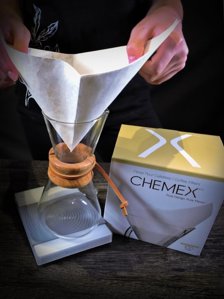 Bonded CHEMEX® Filters. Prefolded square shaped bleached filters, ideal for use in 6 cups Chemex carafe ensuring uniform extraction for pure coffee flavour. Thicker specialty fiber filter design keeps bitter elements, oils, and grounds in their place giving as result a bright and clean cup of coffee. Advise: As with any paper filter, ensure tat you rinse through with boiling water first to remove any remaining paper taste.